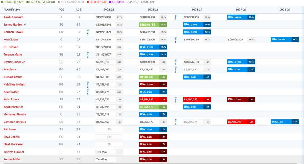 Ab 2026 stehen nur noch Derrick Jones Jr., Kawhi, Dunn und Ivica Zubac unter Vertrag – ein klarer Schlussstrich und zugleich ein Angriff auf die hochkarätige Free-Agency-Klasse von 2026, die Stars wie Embiid, SGA oder Dončić umfassen könnte. Ob einer dieser Namen realistisch ist, lässt sich aktuell schwer sagen, doch es wäre nicht das erste Mal, dass die Clippers in einer Free-Agency für Aufsehen sorgen.