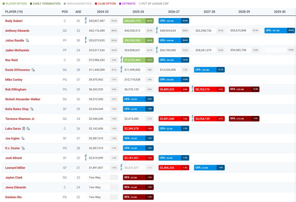 Die Timberwolves standen vor einem Balanceakt – einerseits wollten wir konkurrenzfähig bleiben, andererseits müssen wir langfristig planen. So war auf der einen Seite der sportliche Erfolg mit den starken Playoffs greifbar und die Hoffnung, man könne den für die kommende Spielzeit wiederholen. Auf der anderen Seite ist das Team aus einem vergleichsweise kleinem Markt aber unfassbar teuer und allein die Bigmen-Rotation bestehend aus Gobert, KAT und Reid schlägt mit $115 Millionen zu Buche. Es roch den Sommer über nach einer schweren Entscheidung im Nordwesten, die dann schließlich im Towns-Trade mündete.