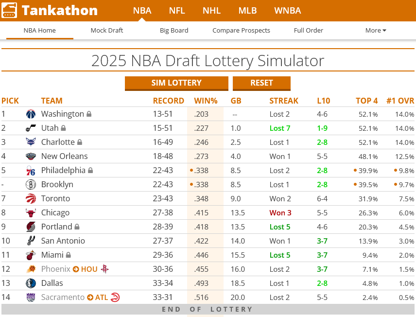 Bei den 76ers kommt erschwerend hinzu: Wird ihnen der 7., 8. oder ein noch späterer Pick zugelost, wechselt dieser zu den Oklahoma City Thunder. Der absolute Worstcase – kein Playoffbasketball und kein Draftpick im Sommer.