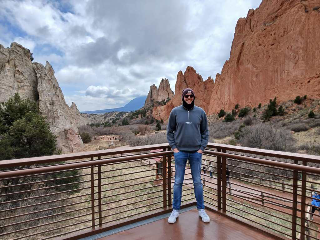 Was bietet sich an, wenn man zwei so unterhaltsame NBA-Spiele eines seiner Lieblingsteams gesehen hat? Natürlich ein Trip raus in die Natur! Ich mietete mir tagesweise ein Auto, denn auch wenn sich das wechselhafte Wetter in Denver immer weiter abkühlte, wollte ich mir die Schönheit der Rocky Mountains keinesfalls entgehen lassen. Auch hier erfolgten die Buchung und Bezahlung des Mietwagens in Denver und die Abwicklung meines deutschen Führerscheins problemlos. Ich fuhr mit meinem Auto eine Stunde Richtung Süden nahe Colorado Springs zum „Garden of the Gods“. Dieser kostenlose Naturpark bietet eine atemberaubende Formation aus rotem Sandstein am Fuße einer der bekanntesten Gipfel der Rocky Mountains, dem 4300m hohen Pikes Peak. Unter Motorsportfans ist dies einer der bekanntesten Berggipfel der USA. Leider verschlechterte sich im Tagesverlauf die Wetterlage, weswegen ich in weiser Voraussicht nicht mehr ins Hochgebirge der Rockies gefahren bin und stattdessen im Schneetreiben vorsichtig auf völlig überfüllten Highways zurück nach Denver fuhr. Die klischeehafte Roadtrip-Romantik im Schneetreiben wäre jedoch nicht komplett gewesen ohne einen Besuch bei In-N-Out-Burger, meiner Lieblings-Burgerrestaurantkette in den USA. Eine kleine Überraschung bot sich mir zurück in Denver, als ich nach Abgabe des Mietwagens einen Zwischenstopp im Bahnhof, der Union Station machte. Um dem Schneetreiben zu entfliehen, wärmte ich mich etwas in einer Buchhandlung des Bahnhofs auf. Dort entdeckte ich eine Biografie über Nikola Jokić mit dem ikonischen Titel „Why So Serious?“, geschrieben von Journalist Mike Singer (Link zu good-reads), die ich mir auch umgehend kaufte.