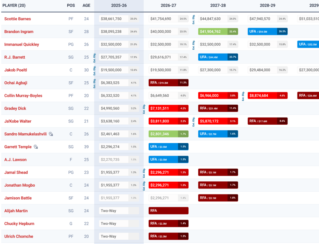 In der Draft konnte man an Nummer 9 ziehen und hat sich für einen der besten Verteidiger des Jahrganges entschieden, Collin Murray-Boyles. In der zweiten Runde hat man noch Alijah Martin gezogen und mit einem Two-Way-Contract ausgestattet. An sich hat man eher eine ruhige Free-Agency gehabt und nur Sandro Mamukelashvili verpflichtet, dazu noch mit Garrett Temple und Jakob Pöltl verlängert.