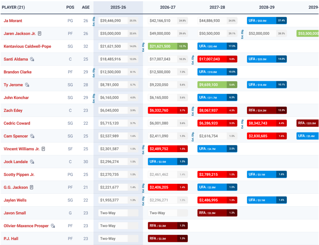 Santi Aldama, mittlerweile einer der besten und „stretchigsten“ Wings der NBA, konnte verlängert werden. Dazu wurde mit Ty Jerome von den Cleveland Cavaliers einer der Überraschungen der letzten Saison verpflichtet.