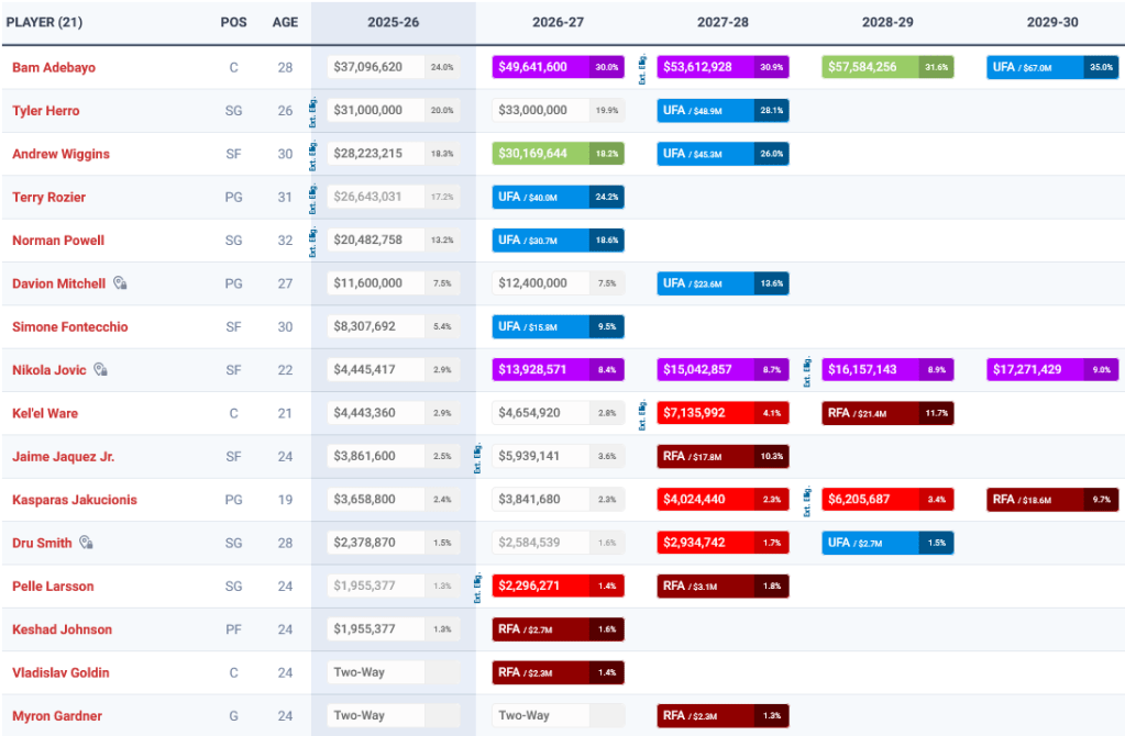 Außerdem kam Simone Fontecchio im Tausch für Duncan Robinson. Und als letzte nennenswerte Addition ist das vielversprechende Guard-Talent Kasparas Jakučionis zu nennen, das via Draft (#20) nach Miami kommt und den man durchaus als Draft-Steal bezeichnen kann.