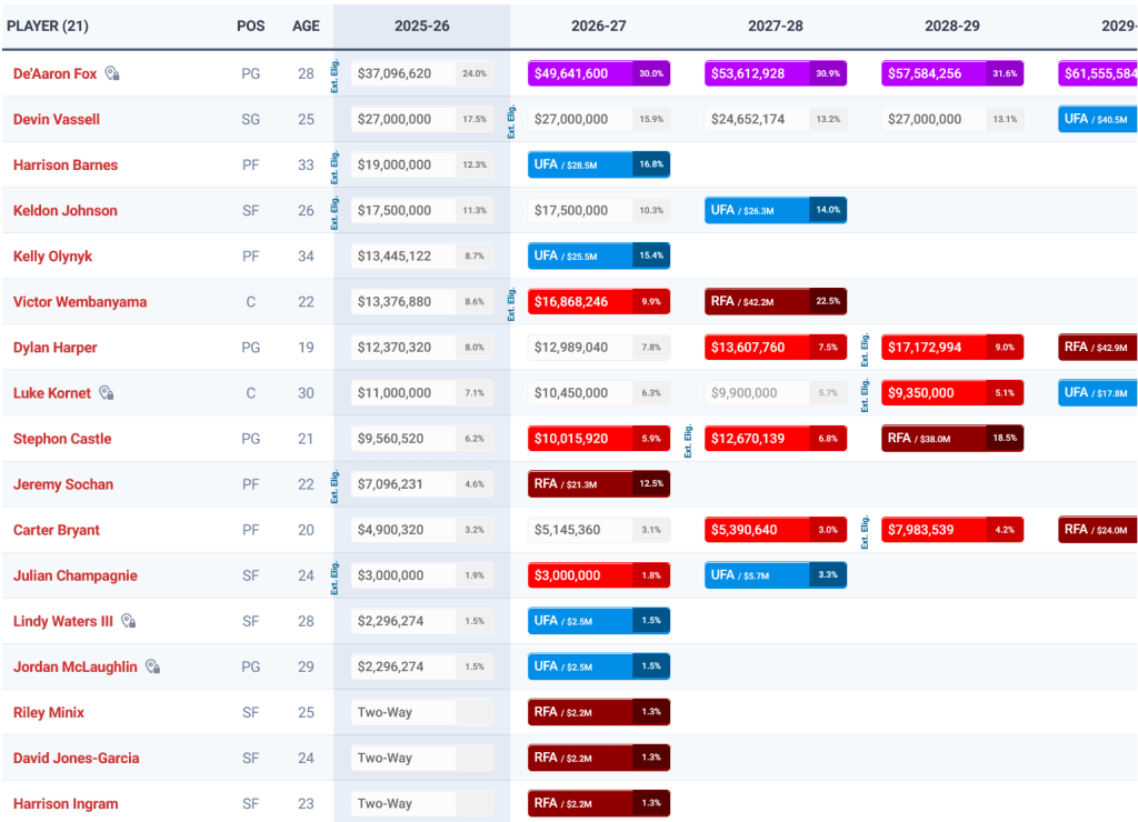 Mitch Johnson übernimmt nun offiziell an der Seitenlinie – und er hatte seit 2019 genug Zeit, von Popovich alles zu lernen, was dieser über Basketball und Team-Building wusste. Neu sind: Der 2. Pick des Drafts 2025 Dylan Harper für den Backcourt (der die schon spannende Guard-Rotation weiter verstärkt) sowie die Veteranen Kelly Olynyk und Luke Kornet für den Frontcourt. Und auch Schlüsselspieler De’Aaron Fox ist nach nur 17 absolvierten Partien fast noch als Neuzugang zu zählen.