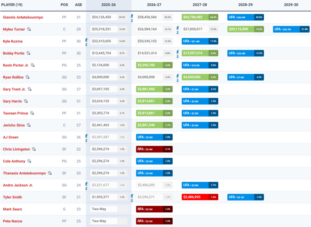 Dass der Greek Freak mit einem Trade trotz aller Liebe für Milwaukee liebäugelt ist wohl kein Geheimnis mehr in dieser Liga. Noch nie wurde es so konkret wie in diesem Sommer, als ein potenzieller Deal mit den New York Knicks im Raum stand. Höchste Eisenbahn also für das Front-Office um GM Jon Horst, erneut bei der Rosterplanung „kreativ“ zu werden und den Griechen zu besänftigen. Zu den wichtigsten Re-Signings gehören Taurean Prince, Kevin Porter Jr., Jericho Sims, Gary Trent Jr. und natürlich Fanliebling Bobby Portis. Als Free-Agents kommen Gary Harris und Cole Anthony. Auch der Ex-Wizard Kyle Kuzma bleibt weiter an Bord. Kleine Randnotiz: Thanasis und Alex Antetokounmpo wurden verpflichtet und ergeben so das erste Brüdertrio in der NBA-Geschichte. Die Wings und Guards sind brauchbare Rollenspieler – aber nicht die Crème de la Crème in Cream City.